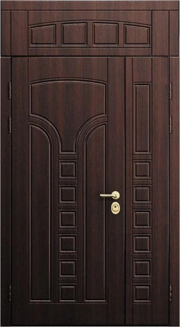Входная дверь с остекленной фрамугой №1 привлекает внимание благодаря стильному и современному дизайну. Ее внешняя и внутренняя отделка из МДФ выглядит элегантно и долговечно, а также устойчива к механическим повреждениям, таким как царапины и вмятины. Каркас из профильной трубы и металл толщиной 2 мм гарантируют прочность и надежность. Наличие фрамуги позволяет создать эффектное освещение и визуально расширяет пространство, при этом сохранение теплоизоляции обеспечено двумя контурами резинового уплотнителя. Блокираторы и качественные замки, такие как Просам и Мосрентген, надежно защищают от взлома. Возможность дополнить дверь стеклопакетом, зеркалом или коваными элементами делает эту модель еще более универсальной для различных интерьеров. Входная дверь с остекленной фрамугой №1 от производителя: быстрое изготовление и монтаж в Раменском, индивидуальные размеры, широкий выбор материалов и фурнитуры, официальная гарантия до 10 лет.