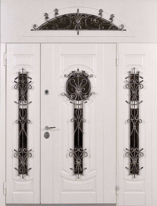 Входная дверь с кованой ручкой и фрамугой №6 представляет собой элегантное и надежное решение для тех, кто ценит не только безопасность, но и стиль. Эта модель идеально подойдет для оформления парадных входов в дома и офисы. Внешняя отделка из плиты МДФ придает двери современный и чистый вид, который сохраняется долго благодаря стойкости к внешним воздействиям. Благодаря профильной трубе с толщиной металла 2 мм и ребрам жесткости, конструкция двери гарантирует прочность и долговечность. Дополнительный элемент — кованая ручка, которая добавляет изысканности и подчеркивает высокий класс изделия. Стандартная комплектация не включает шумо- и теплоизоляцию, однако она может быть установлена по желанию. Резиновый уплотнитель с двумя контурами обеспечит хорошую герметичность, защищая от ветра и пыли. Подходит для установки как в частных домах, так и в офисах, привлекая внимание своим необычным и стильным дизайном. Входная дверь с кованой ручкой и фрамугой №6 от производителя: быстрое изготовление и монтаж в Раменском, индивидуальные размеры, широкий выбор материалов и фурнитуры, официальная гарантия до 10 лет.