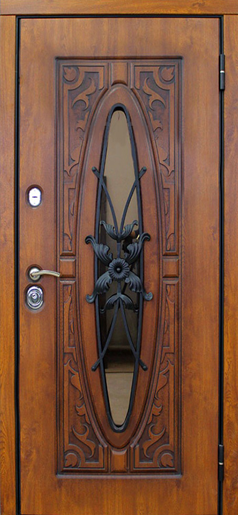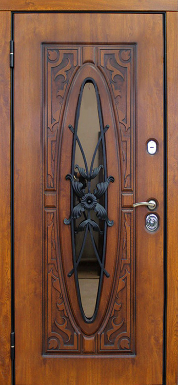 В частном доме дверь должна быть не просто барьером, а настоящей визитной карточкой, и именно эту задачу решает входная дверь со стеклом и ковкой №23. Натуральное дерево в отделке придает ей благородный и теплый вид, а декоративная ковка превращает конструкцию в выразительный элемент архитектуры. Внутри скрыт стальной каркас с листом металла 1,5 мм и противосъёмными блокираторами, что обеспечивает прочность и устойчивость к взлому. Особого внимания заслуживает наличие терморазрыва как в коробке, так и в полотне: он защищает от промерзания, исключает появление конденсата и помогает сохранять тепло зимой и прохладу летом. Тройной контур магнитного уплотнения усиливает герметичность и снижает уровень уличного шума, а пенопласт повышенной плотности в качестве наполнителя добавляет теплоизоляции. Входная дверь в частный дом со стеклом и ковкой №23 гармонично сочетает надежность и эстетику, позволяя владельцу адаптировать её под стиль фасада с помощью дополнительных декоративных решений. Входная дверь в частный дом со стеклом и ковкой №23 от производителя: быстрое изготовление и монтаж в Раменском, индивидуальные размеры, широкий выбор материалов и фурнитуры, официальная гарантия до 10 лет.