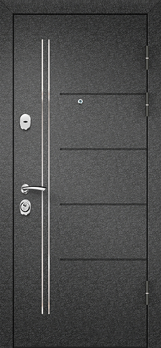Порошковая входная дверь №65 объединяет прочность металла и практичную отделку, делая её универсальным выбором для квартиры, офиса или подъезда. Каркас и полотно собраны из профильной трубы, усиленной ребрами жесткости, а стальной лист толщиной 2 мм придает конструкции дополнительную устойчивость к нагрузкам. Снаружи нанесено молотковое напыление — покрытие, стойкое к царапинам и атмосферным воздействиям, благодаря чему дверь долго сохраняет аккуратный внешний вид. Внутренняя сторона оформлена ламинированными панелями, создающими ощущение тепла и комфорта. Два резиновых контура уплотнения помогают отсечь сквозняки и пыль, при необходимости можно добавить шумо- и теплоизоляцию. Модель №65 сочетает надежность и лаконичность, а её внешний вид гармонично впишется как в жилое пространство, так и в деловую среду. Порошковая входная дверь №65 от производителя: быстрое изготовление и монтаж в Раменском, индивидуальные размеры, широкий выбор материалов и фурнитуры, официальная гарантия до 10 лет.