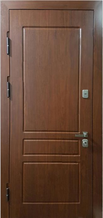 Дверь входная уличная с терморазрывом №41 – это надежная и стильная модель, идеально подходящая для частных домов и коттеджей. Конструкция двери с терморазрывом в коробке и полотне эффективно защищает от холодного воздуха и влаги, обеспечивая стабильный микроклимат внутри помещения. Внешняя и внутренняя отделка из панелей МДФ с ПВХ покрытием не только привлекает внимание своим современным дизайном, но и обеспечивает отличную стойкость к механическим повреждениям, а также долговечность. Металлическое полотно толщиной 1,5 мм с ребрами жесткости из профильных труб гарантирует высокую прочность, а также надежную защиту от взлома. Шумо- и теплоизоляция из пенопласта повышенной плотности создают дополнительный комфорт. Дверь оснащена высококачественными замками Kale Kilit с тремя ригелями, что обеспечивает высокий уровень безопасности. Дверь входная уличная с терморазрывом №41 от производителя: быстрое изготовление и монтаж в Раменском, индивидуальные размеры, широкий выбор материалов и фурнитуры, официальная гарантия до 10 лет.
