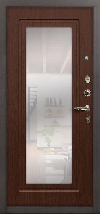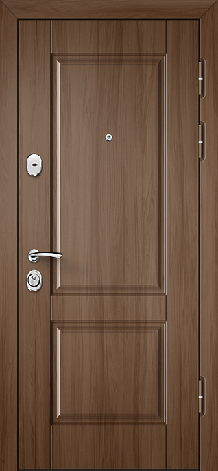 Входная дверь с зеркальными вставками №56 сочетает надежность металлической конструкции и удобство функционального декора. Зеркало не только украшает интерьер, но и делает помещение визуально просторнее, что особенно ценно для квартир и офисов. Для частного дома такая дверь добавляет практичности — всегда можно взглянуть на отражение, выходя на улицу. Отделка выполнена из панелей МДФ с ПВХ-покрытием, устойчивым к царапинам и мелким повреждениям, что обеспечивает долговечность и сохранение первоначального вида. Каркас собран из профильной трубы, усилен рёбрами жёсткости и металлическим листом толщиной 2 мм, благодаря чему дверь выдерживает серьёзные нагрузки и обеспечивает защиту от взлома. Два контура уплотнения препятствуют проникновению сквозняков и пыли, а резиновый уплотнитель сохраняет плотное прилегание полотна. Замковая система включает надежные российские механизмы Просам и Мосрентген, которые отличаются стабильной работой и высоким ресурсом. Дверь №56 — это прочность, удобство и современный дизайн в одной конструкции. Входная дверь с зеркальными вставками №56 от производителя: быстрое изготовление и монтаж в Раменском, индивидуальные размеры, широкий выбор материалов и фурнитуры, официальная гарантия до 10 лет.