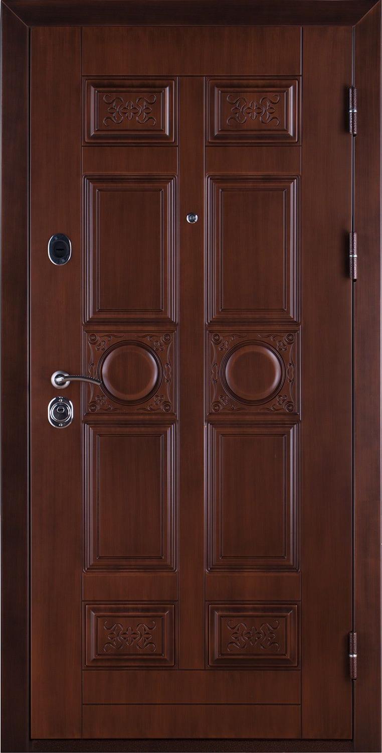 Дверь с надежной фурнитурой и коваными элементами на стекле №18