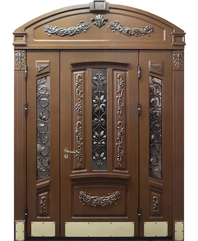 Арка придаёт входу особый характер и сразу выделяет дом среди соседних построек. Арочная входная дверь стеклопакет для загородного дома сочетает в себе статусность массивного дуба и современную практичность стеклопакета, который наполняет прихожую естественным светом и визуально облегчает массивное полотно. Стальной каркас с листом металла толщиной 2 мм и ребрами жёсткости обеспечивает надёжность, а два контура уплотнения защищают от сквозняков. Терморазрыв в коробке и полотне предотвращает промерзание, что особенно актуально для эксплуатации в загородных коттеджах. Натуральный дуб в отделке не только долговечен, но и устойчив к повреждениям, сохраняя презентабельный вид долгие годы. Такая дверь подчёркивает архитектурный стиль дома и позволяет совместить изысканность формы с практичностью современных технологий. Арочная входная дверь стеклопакет для загородного дома от производителя: быстрое изготовление и монтаж в Раменском, индивидуальные размеры, широкий выбор материалов и фурнитуры, официальная гарантия до 10 лет.