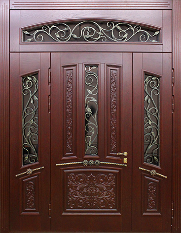 Эта модель создана для тех, кто ценит солидность и внушительный внешний вид парадного входа. Натуральный массив дуба в отделке придаёт дверному полотну статусный характер, а стеклянные вставки позволяют добавить света и лёгкости фасаду дома. При этом основа конструкции выполнена из прочной профильной трубы с использованием листа металла толщиной 2 мм и ребер жёсткости, что гарантирует надёжность и устойчивость к взлому. Двустворчатая входная дверь со стеклом №39 удобна для широких проёмов коттеджей и частных домов, обеспечивая не только безопасность, но и удобство при внесении крупногабаритной мебели. Итальянские замки Cisa сочетают в себе высокий класс защиты и плавность хода механизма, а наличие двух контуров уплотнения дополнительно защищает от сквозняков. Возможность комбинировать отделку, добавить зеркало, витраж или кованые элементы делает модель гибкой для индивидуального дизайна и подчеркивает её представительский статус. Двустворчатая входная дверь со стеклом №39 от производителя: быстрое изготовление и монтаж в Раменском, индивидуальные размеры, широкий выбор материалов и фурнитуры, официальная гарантия до 10 лет.