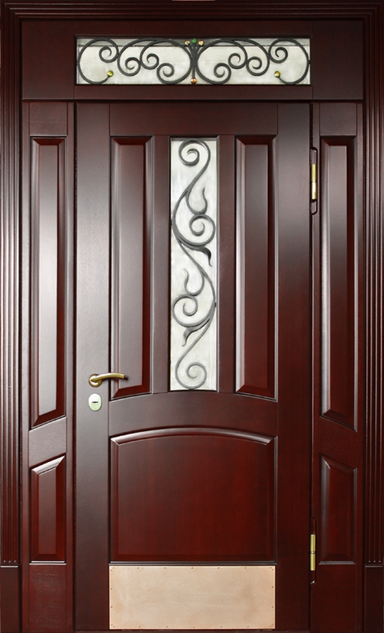 Красивая шпонированная дверь с надежной фурнитурой и ковкой "лоза" №33 идеально дополнит интерьер вашего частного дома или коттеджа. Внешняя и внутренняя отделка выполнены из натурального дерева, что придает двери элегантность и стиль. Профильная труба 50х25 мм используется для каркаса и полотна, а лист металла толщиной 2 мм и ребра жесткости из профильных труб 40х25 мм обеспечивают прочность и долговечность. Несмотря на отсутствие терморазрыва, дверь гарантирует надежную защиту и теплоизоляцию благодаря двум контурам уплотнения. Элементы ковки "лоза" придают двери особое очарование, сочетая практичность с эстетикой. Эта дверь — идеальный выбор для тех, кто ценит стиль, качество и безопасность. Красивая шпонированная дверь с надежной фурнитурой и ковкой "лоза" №33 от производителя: быстрое изготовление и монтаж в Раменском, индивидуальные размеры, широкий выбор материалов и фурнитуры, официальная гарантия до 10 лет.