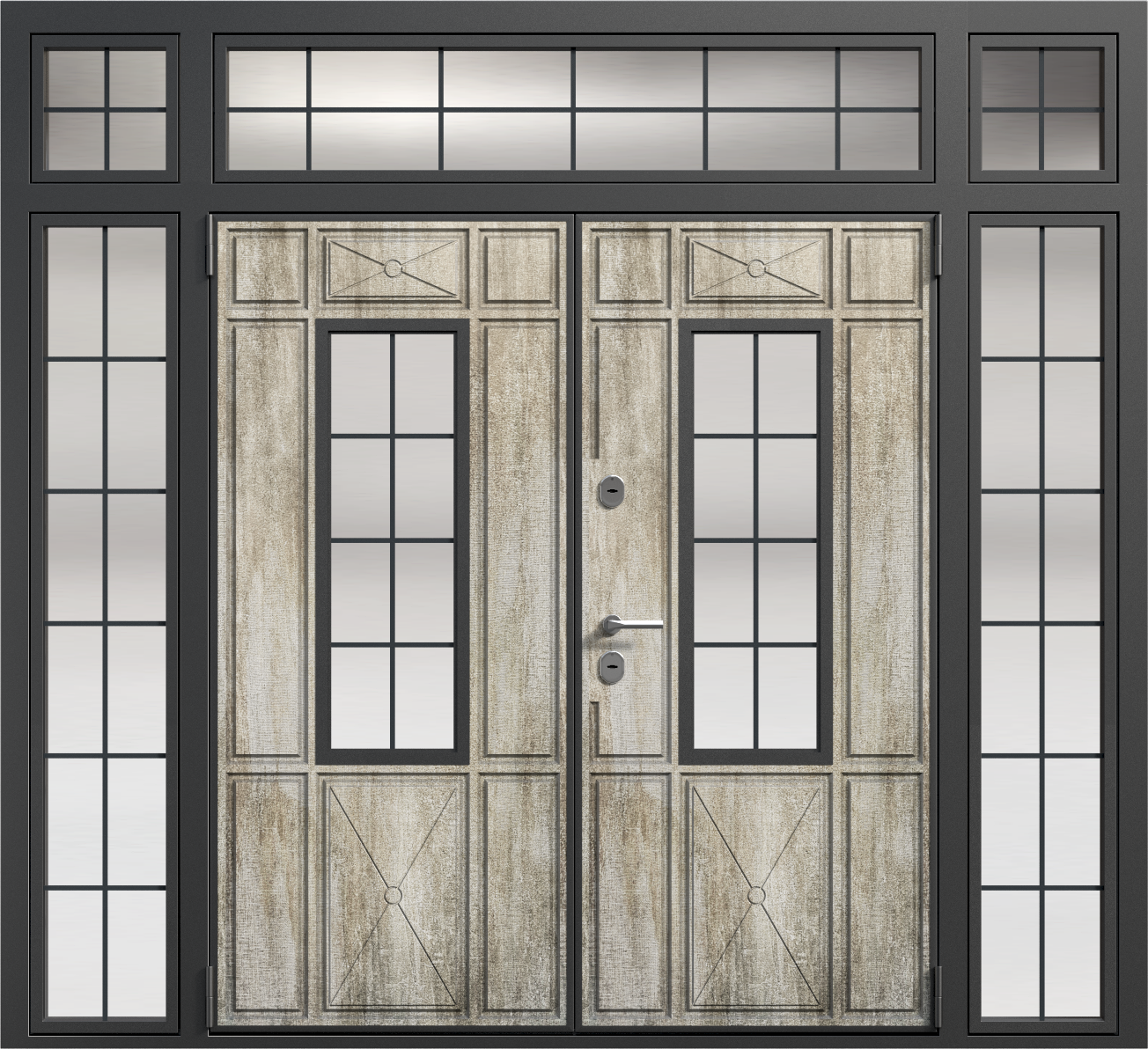 Парадная дверь с остекленной фрамугой №6 — это идеальный выбор для тех, кто ценит элегантность и функциональность. Внешняя отделка из панелей МДФ ПВХ обеспечивает долговечность и устойчивость к внешним воздействиям, что делает эту модель подходящей как для частных домов, так и для офисных помещений. Прочная конструкция с каркасом из профильной трубы 50x25 мм и листом металла толщиной 2 мм гарантирует долговечность и высокую безопасность. Замки Kale Kilit с тремя ригелями обеспечат надежную защиту, а уплотнение с двумя контурами эффективно защитит от шума и холода. Дополнительные элементы, такие как стеклопакеты, зеркала или кованые элементы, можно добавить по вашему желанию, позволяя адаптировать дверь под любые требования. Парадная дверь с остекленной фрамугой №6 от производителя: быстрое изготовление и монтаж в Раменском, индивидуальные размеры, широкий выбор материалов и фурнитуры, официальная гарантия до 10 лет.