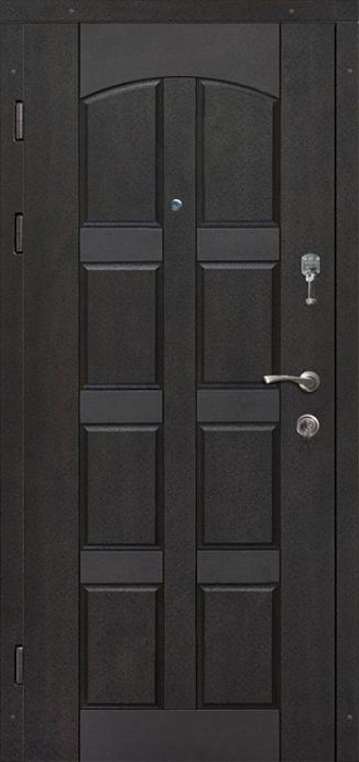 Входная дверь для дома уличная №18 разработана для установки в условиях, где от двери требуется максимум прочности и устойчивости к погодным испытаниям. Молотковое напыление на внешней стороне не только придает фактурный декоративный эффект, но и защищает поверхность от влаги, ударов и мелких повреждений, сохраняя привлекательный вид долгие годы. Внутри дверь отделана панелями МДФ с ПВХ-покрытием, которые отличаются стойкостью к царапинам и удобством в уходе, а также гармонично вписываются в любой интерьер прихожей. Каркас и полотно выполнены из профильных труб, усиленных стальным листом толщиной 2 мм и дополнительными ребрами жесткости, что делает конструкцию надежной и долговечной. Два контура резинового уплотнителя эффективно защищают от сквозняков и уличной пыли. Особое внимание заслуживает наличие терморазрыва в коробке и полотне: эта технология предотвращает промерзание и образование конденсата, обеспечивая сохранение тепла даже в сильные морозы. Входная дверь для дома уличная №18 от производителя: быстрое изготовление и монтаж в Раменском, индивидуальные размеры, широкий выбор материалов и фурнитуры, официальная гарантия до 10 лет.